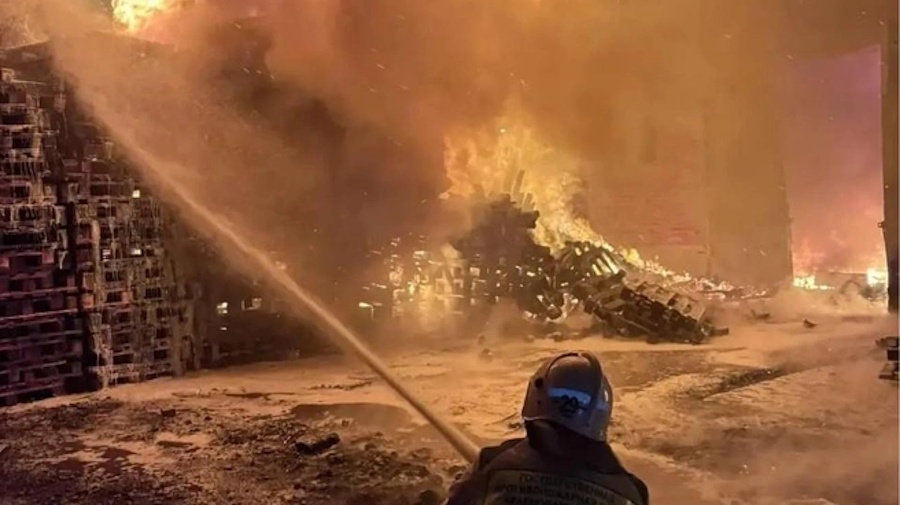 Огонь вспыхнул вечером. На территории было много горючих материалов, и пламя быстро разошлось по цехам. Площадь пожара достигла 400 квадратных метров.