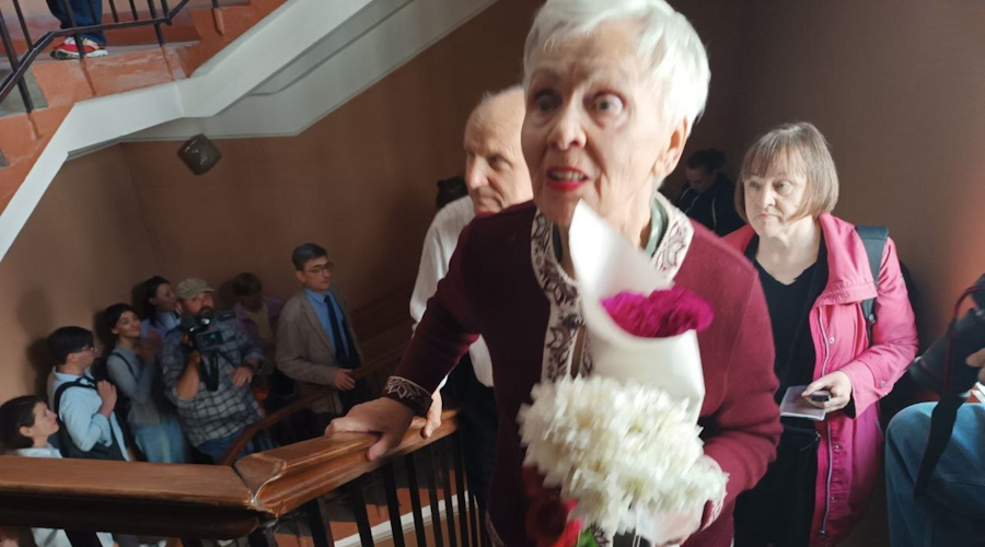 Сегодня Людмилу Васильеву встретили овациями и цветами. Она, как всегда, выглядела бодрой и неунывающей.