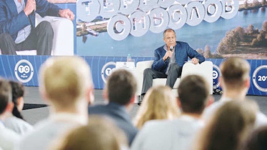 Правящий режим РФ продолжает военно-духоскрепную накачку. Сегодня слово имел Сергей Лавров. «Путинский Риббентроп», ради Зеленского записавший в евреи Гитлера, выступил на «Территории смыслов». Этот «молодёжный форум» задуман как кадровый инкубатор на основе идеологической штамповки и пропагандной дебилизации. На днях Константин Богомолов воспевал здесь войну как «удачу поколения». Эстафету от режиссёра подхватил министр иностранных дел.