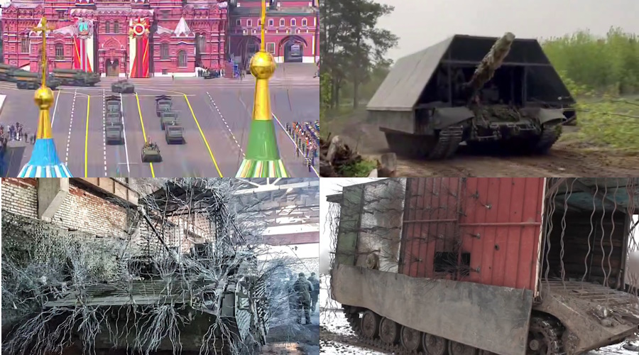 Показали и технику. БМП «Курганец-25», «Бумеранг», «Бережок» (не новая, а старая модернизированная), тяжёлая огнемётная система ТОС-2 «Тосочка» (известна уже несколько лет). А вот настоящую, самую современную и передовую российскую технику показывать не стали. То ли оттого, что очень нужна на фронте, то ли, чтобы враги не разведали. Не было ни гордости вооружённых сил РФ — боевых ослов, ни основной ударной силы — царь-мангалов, ни последнего достижения военной-технической мысли «дикобразов» — БМП, сплошь утыканных металлическими «кустами» для защиты от FPV-дронов.
