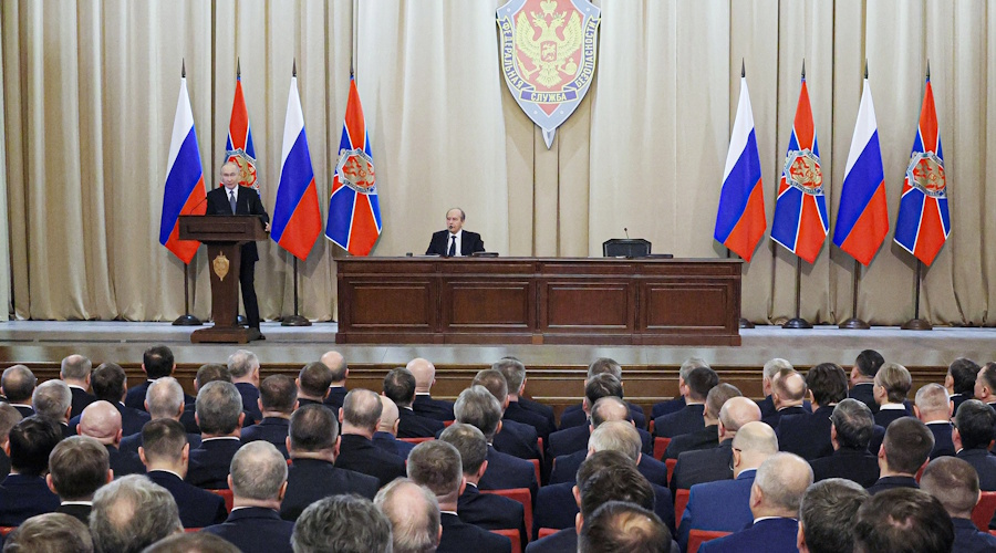 Коллегия ФСБ подвела итоги 2025 года и утвердила задачи на 2026-й. На заседании выступил глава РФ Владимир Путин. Сам бывший директор ФСБ и коренной советский гэбист положительно оценил успехи госбезопасности. Однако даже на церемониальном мероприятии ему пришлось говорить об участившихся терактах, росте экстремизма и т.п. Тревогу вызывают даже такие пустяки, как думские псевдовыборы. В общем, две тысячи сотрудников ФСБ в прошлом году удостоились госнаград. Четверо — посмертно.