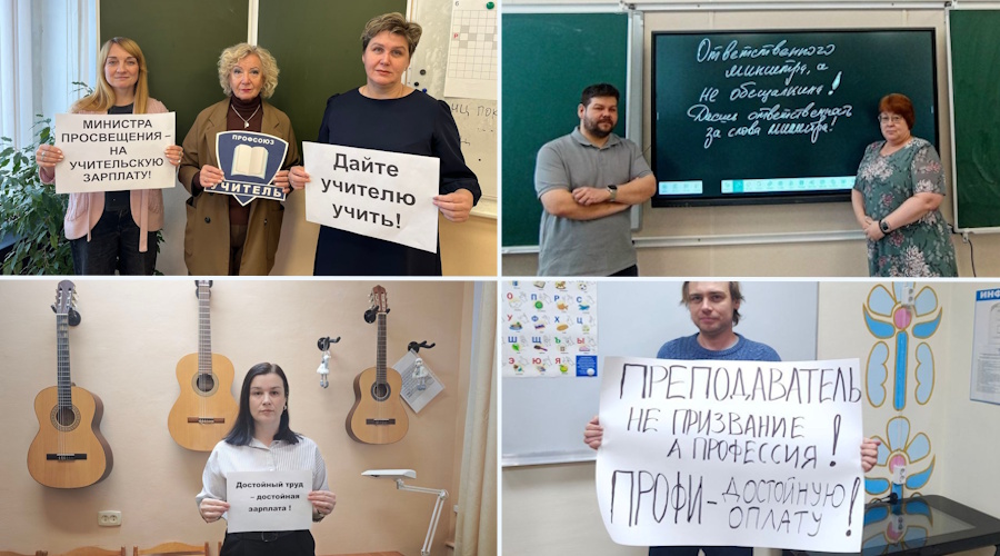 Учителя из Москвы, Воронежа, Сыктывкара, Северодвинска, Краснодара, Ижевска, Мяунджи Бурятии, Московской, Магаданской и Свердловской областей провели флешмоб в защиту своего права на достойную зарплату. Они фотографировались с плакатами «Министра просвещения — на учительскую зарплату», «Дайте учителю учить» и «Два МРОТ за ставку».