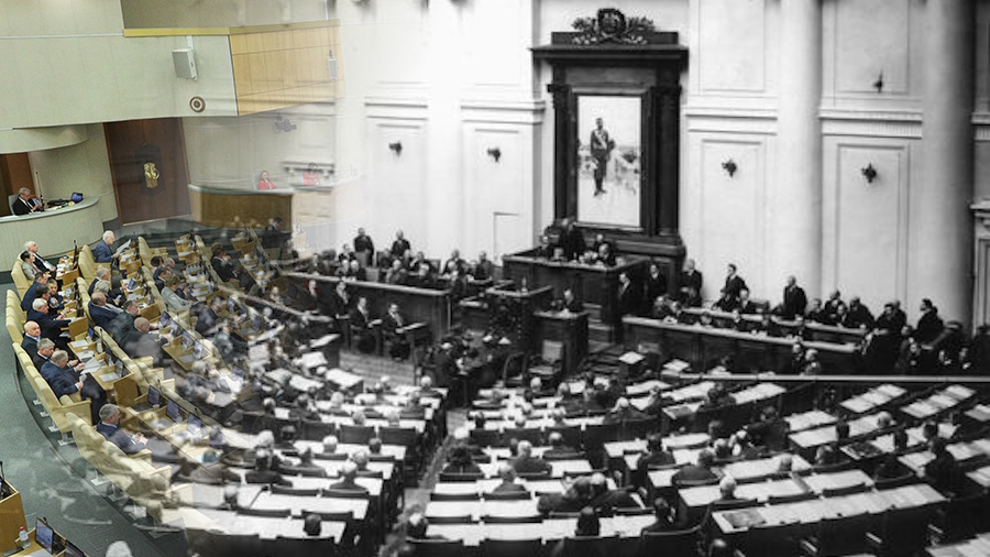 Российский политбомонд отметил День российского парламентаризма. На этот раз дата оформлена как 120-летний юбилей: 27 апреля 1906 года в Таврическом дворце открылось первое заседание Государственной Думы Российской империи. Первый российский парламент избирался посреди Первой Русской революции, большинство голосов и мандатов имели либералы-кадеты и народники-трудовики, монархисты подверглись на выборах полному разгрому. Но такие детали сегодня не обсуждались. Хозяева не хотят о своём грустном.