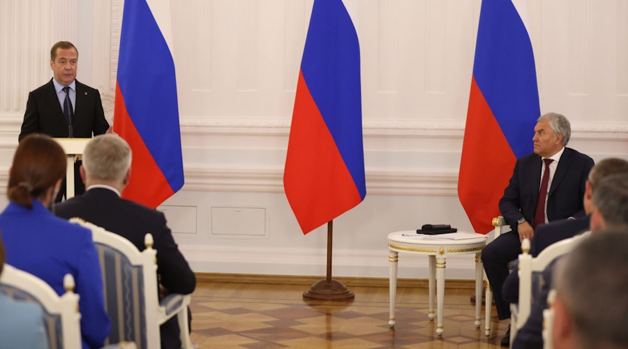 Зампред Совбеза РФ и председатель «Единой России» Дмитрий Медведев, бывший президент и премьер, встретился со своей думской фракцией. Высказался на темы бюджета и выборов 2026 года. Закреплённая за «дважды экс-» клоунская репутация позволяет кремлёвке использовать его для оглашения установок особого характера. На чём не хотели бы палиться более серьёзные фигуры. Типа «денег нет, но вы держитесь» или «мёртвая рука». Так и на этот раз: бюджет — военный, выборы — победа.