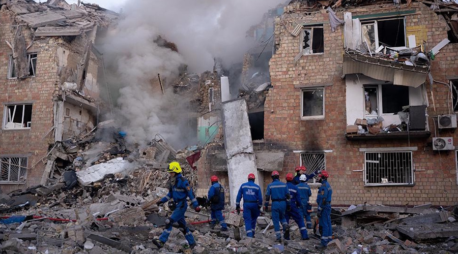 18 человек убиты, 48 ранены — предварительные данные по трагической ночи в Киеве. Среди погибших четверо детей. Продолжается спасение из-под завалов. Войска РФ применили против жилых домов ударные «шахеды», баллистические «кинжалы» и «искандеры», крылатые X-101. Атакованы и другие города Украины, Харьковщина, Черниговщина, Сумщина. Всего за ночь по Украине были выпущены 629 ракет и дронов. «Россия выбирает баллистику, а не стол переговоров», — констатирует президент Украины Владимир Зеленский.