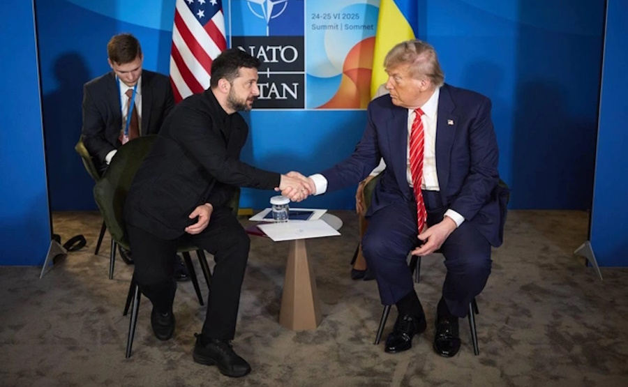 Для гаагского саммита нашёл время президент Украины Владимир Зеленский. Генеральный секретарь НАТО Марк Рютте вышел к прессе вместе с ним. Называл Зеленского исключительно по имени. Обещал от имени Европы и Канады выделить в помощь Украине более 35 млрд евро ещё до начала июля: «Это больше, чем в прошлом году». Чтобы: «Владимир Владимирович Путин никогда вновь не попытался захватить даже квадратного километра Украины». Председатель Еврокомиссии Урсула фон дер Ляйен старалась не отстать: «Владимир, ты среди друзей!»